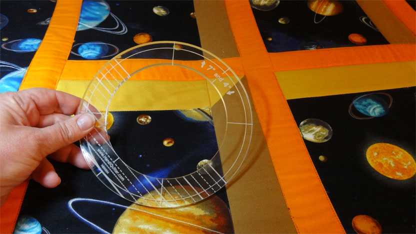 I decided to use a round ruler and make arcs curving over the planets. Here's the ruler:
